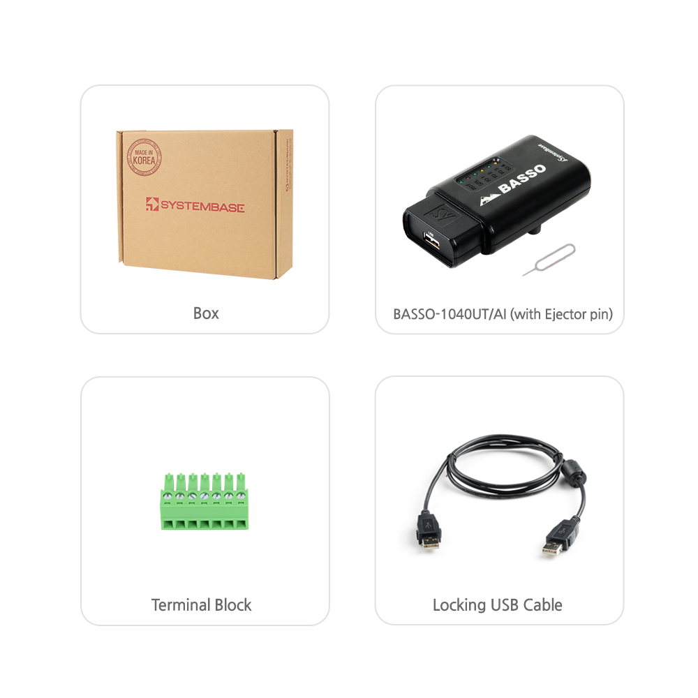 SystemBase「BASSO-1040UT/AI」は、産業現場で使用される温度や圧力などのアナログセンサーからの電圧・電流データを入力し、USBインターフェースに変換するUSB to AI(Analog Input)アナログ入力ユニットです。