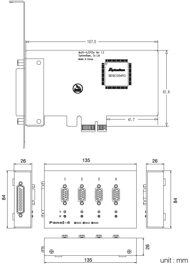 SystemBase「Multi-4/LPCIe」は、4系統のシリアルポートを備えた4ポートシリアルインターフェースPCIeカードです。