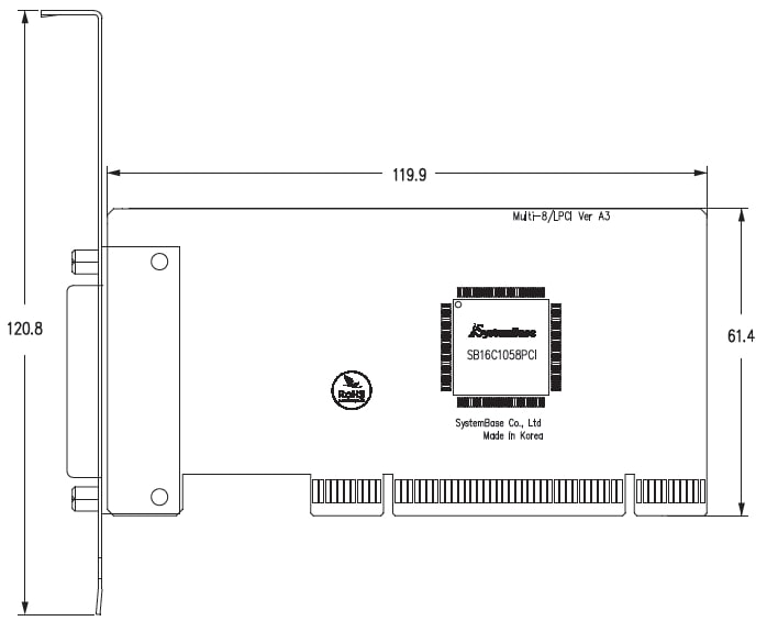 SystemBase「Multi-8/LPCI」は、8系統のシリアルポートを備えた8ポートシリアルインターフェースPCIeカードです。