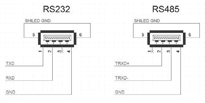 | 信号 | RS232: TXD, RXD RS485: TRXD+, TRXD- |