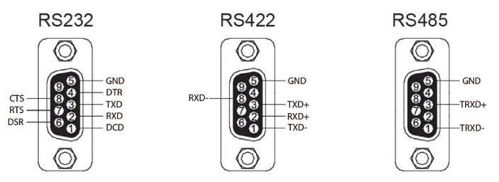 | 信号 | RS232: TXD, RXD, RTS, CTS, DTR, DSR, DCD RS422: TXD+, TXD-, RXD+, RXD RS485: TRXD+, TRXD- |